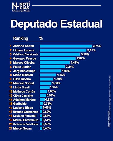 De acordo com pesquisa recente realizada pelo Instituto Nacional de Pesquisas e Consultoria (INPPEC), Marcell Souza já figura entre os 24 mais votados, posicionando-se entre os nomes com potencial real de conquista de uma cadeira no Parlamento estadual. O resultado evidencia seu crescimento e destaque no cenário político em todo o estado.